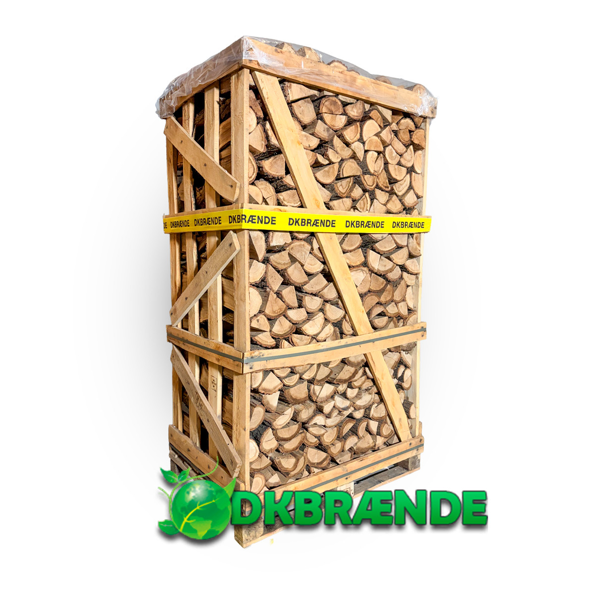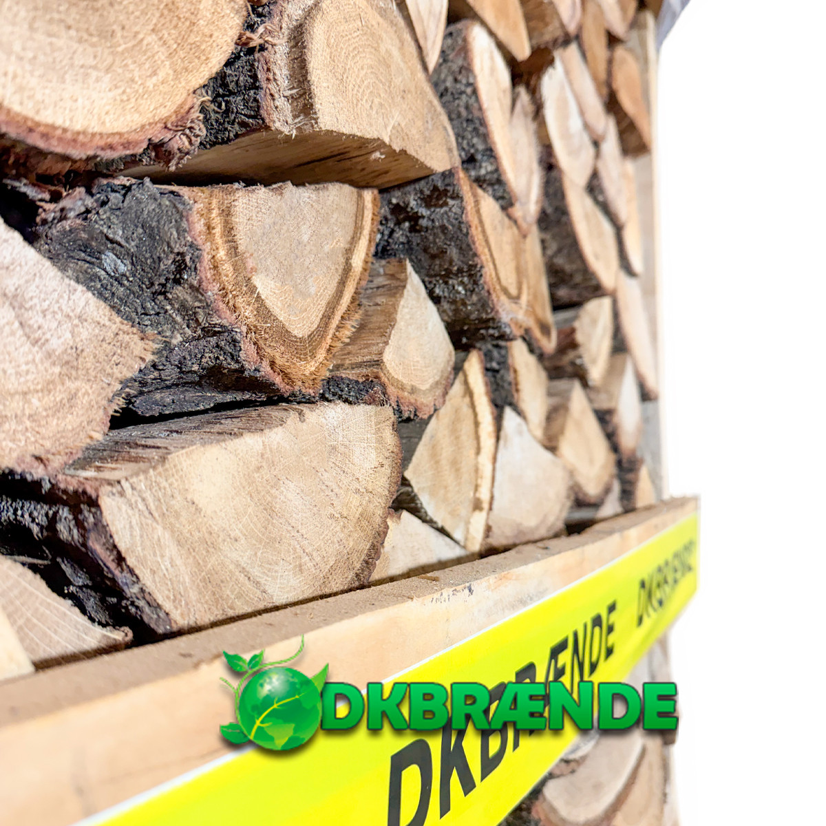 Egetræet du køber her er ovntørret og dermed klar til brug ved levering. Tætpakket brændetårn med 1,7-1,8 stablet kubikmeter. Savet i ca. 24-28 cm, flækket i gode stykker og håndstablet. Egetræ brænder længe - rigtig længe. Hvor andet træ hurtigt går op i flammer og brænder hurtigt af, her vil Egebrænde ligge og gløde i lang tid. Du får således en god afbrænding, hvor varmeafgivelsen er spredt ud over lang tid. F.eks. er Eg ideelt, hvis du vil have varmen til at holde hele natten. Du kan med fordel tilsætte andre træsorter når du skal tænde op i eg, da det kan være svært at få gang i. Ved at bruge noget mere hurtigtbrændende træ får du fjernet kuldebroen i skorstenen, således at egetræet får den bedst mulige afbrænding. Udvendig mål på pallen: Højden 200-205cm Bredden 120-125cm Dybden 80-85cm - Yderligere information